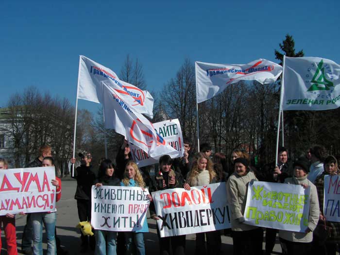 Впервые на митинг пришел ответчик со стороны мэрии – главный эколог города Андрей Салтыков. Как заявил представитель мэрии, "проблема бездомных животных давно назрела в городе, ее надо решать, и он как эколог не согласен с тем, чтобы животных просто отлавливали и убивали". "При поддержке общественности удалось добиться того, что в бюджет включены расходы на создания пункта передержки животных", - добавил Салтыков.