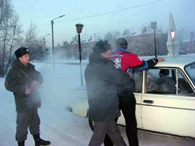 По словам Шадрина, через полчаса после отправления поезда к нему подошли сотрудники милиции, предъявили "ориентировку", и заявили, что он похож на человека, который совершил разбойное нападение. После чего активиста задержали и доставили в линейный отдел.